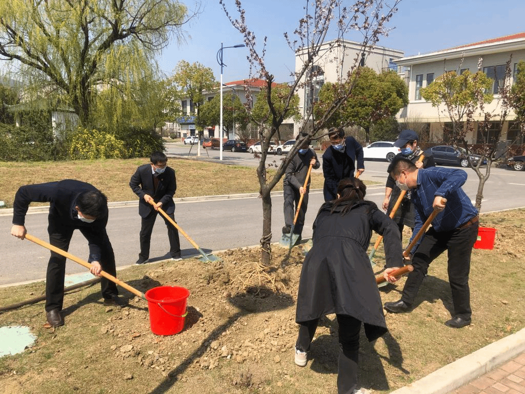 疫情当前,领导带头,佩戴口罩,几人一组,默契配合,扶树正苗,挥锹培土、踩土定植、提桶浇水……各个环节衔接紧密,有条不紊,经过一番热火朝天的劳动,新栽种的桃树、李树、梨树、石榴树等60余棵树苗迎风挺立,新的一片“桃李园”便诞生。植树抗“疫”两不误,桃李不言下自成蹊,种下的一棵棵树苗代表着生机和希望,寄托着大家打赢疫情防控攻坚战的坚定信念,也预示着当前正在经历的疫情终将过去,在这个特殊的植树季,大家以劳动提振士气,更是期待师生早日相聚校园,共赏美丽景致。