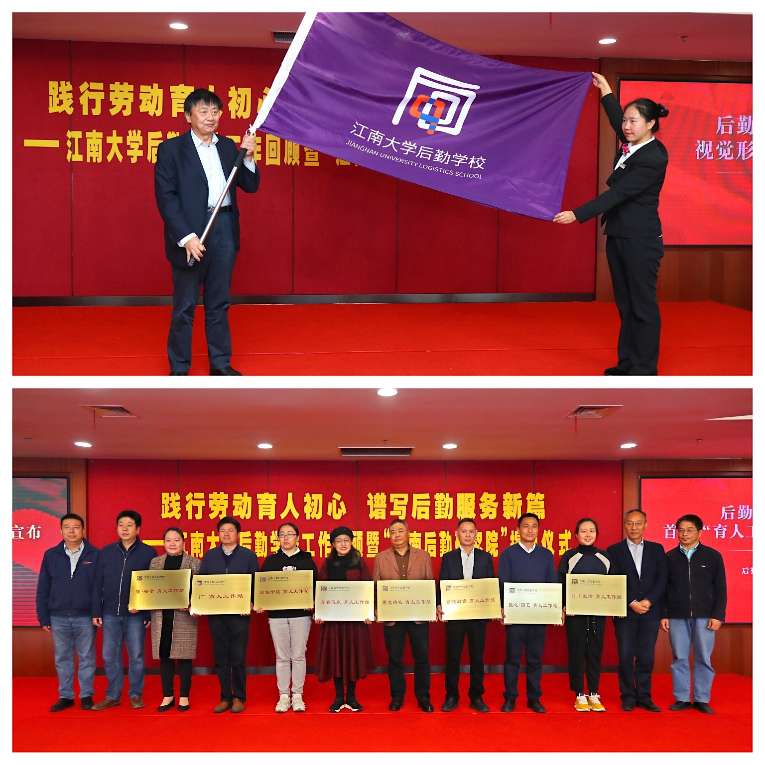 程天权、朱庆葆共同为“江南后勤研究院”成立揭牌。仪式上发布了江南大学后勤学校视觉形象,黄在宇为后勤学校授旗。后勤管理处处长刘长青宣读首批创建“后勤育人工作站”名单,学校有关部门领导为后勤育人工作站授牌。