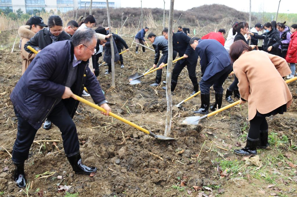 春风吹新绿,树木又树人。为庆祝建党100周年,推进绿色生态校园建设,践行劳动育人使命,植树节当天,后勤保障系统党委、机关党委、环土学院党委在医学院西南侧苗圃联合开展了以“同心共植百棵树,献礼建党一百年”主题的植树活动。副校长田备,校党委常委、组织部部长张影陆,校长助理张光生和师生党员代表共计60余人一起参加了植树活动。