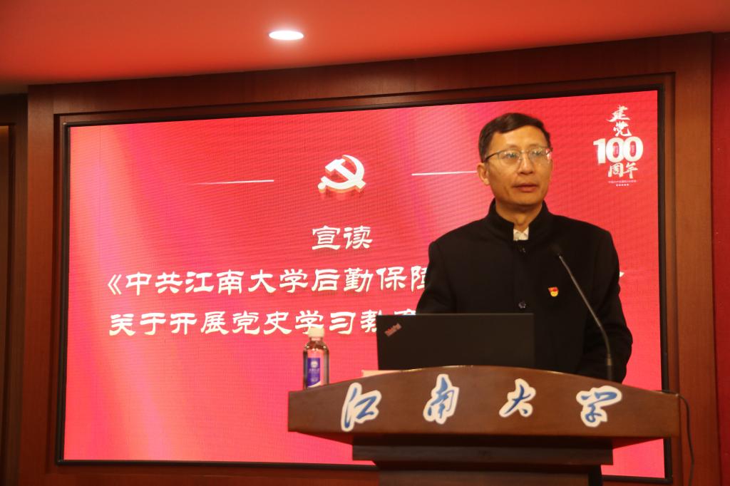 后勤保障系统将以本次党史学习教育动员大会为起点,发充分挥党支部战斗堡垒和党员先锋示范作用,以党建为引领,努力学好党史这门“必修课”,做到学史明理、学史增信、学史崇德、学史力行,学党史、悟思想、办实事、开新局,不断推进后勤“服务手段信息化”“服务设施现代化”“服务产品标准化”“服务队伍专业化”的“四化”建设,扎实推进后勤“高质量发展”“高精准管理”“高品质服务”“高风尚文化”的“四高”建设,为服务学校“一体两翼”发展,早日建成世界知名、中国一流、江南风格的研究型大学做出更大贡献。