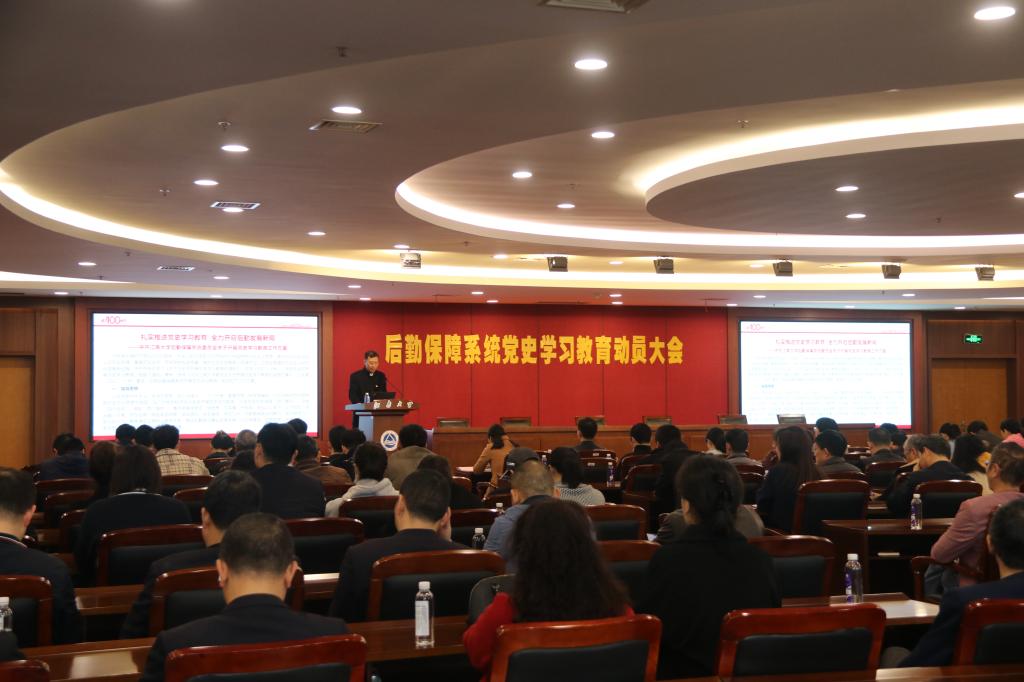 4月1日上午,后勤保障系统党史学习教育动员大会在图书馆五楼报告厅举行。后勤保障系统中层领导干部、党员、入党积极分子以及共建党支部代表共170余人参加会议。后勤保障系统党委副书记兼后勤工作协调办公室副主任金明媚主持会议。