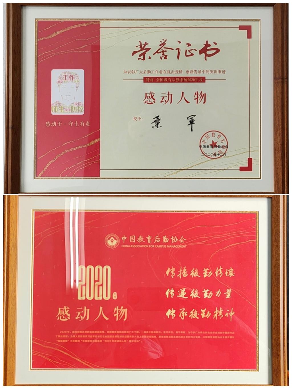 近日,由中国教育后勤协会主办的全国教育后勤系统“2020年度感动人物”授予仪式在上海举行,我校医院院长叶军同志荣获此项荣誉称号。本次活动共表彰了35名个人、10个集体,充分展现后勤人在战“疫”中冲锋在前、甘于奉献、勇于担当的精神,弘扬后勤人为党育人、为国育才的责任感和使命感。