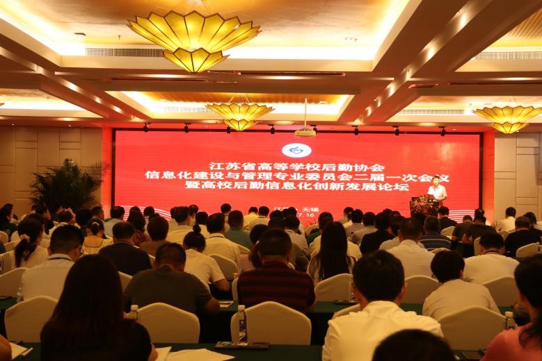 7月16日,江苏省高等学校后勤协会信息化建设与管理专业委员会二届一次会议暨高校后勤信息化创新发展论坛在江南大学召开。江苏省高等学校后勤协会副会长兼秘书长黄在宇,中国教育后勤协会副会长、江苏省高等学校后勤协会副会长、江苏省高校后勤协会信息化建设与管理专业委员会主任田备出席会议,江苏各高校分管后勤工作的校领导、后勤管理处领导、后勤信息化建设一线的管理者200余人参加会议。会议由江南大学信息化建设与管理中心主任王强主持。