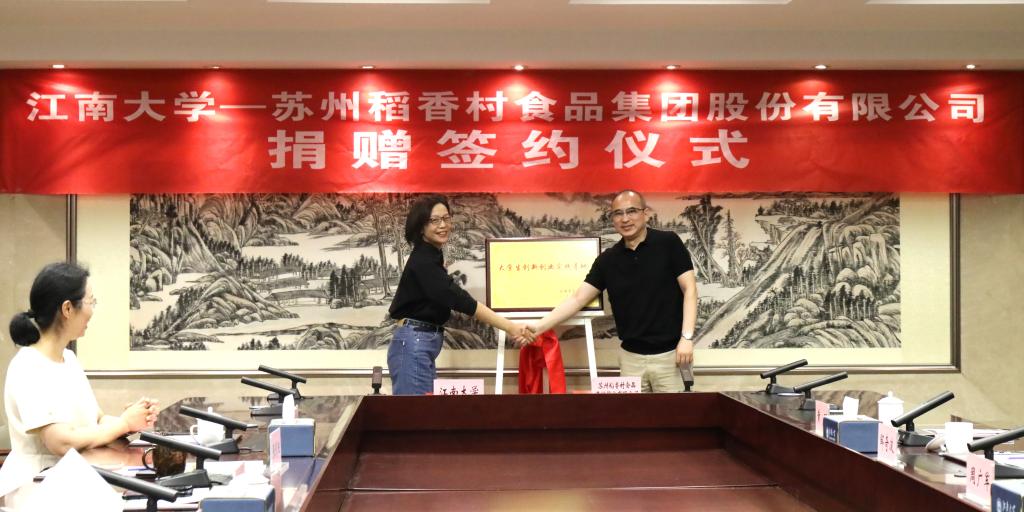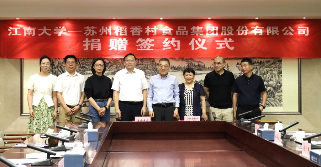 7月1日上午,苏州稻香村食品集团股份有限公司董事长周广军(制糖工程1979级校友)、总经理王芳(制糖工程1980级校友)、福吉佳公司总经理邹奇波(食品科学与工程1986级校友)等一行5人来访我校,双方在行政楼B305会议室举行江南大学—苏州稻香村食品集团股份有限公司捐赠签约仪式。江南大学党委书记、教育发展基金会理事长吴正国,中国工程院院士、校长陈卫,校党委常委、副校长张影陆,社会合作与校友联络处及食品学院相关负责人出席活动。