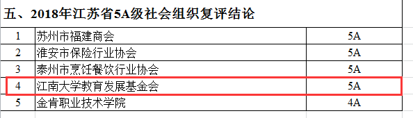 4月25日,我校教育发展基金会通过了2018年度社会组织评估,复评为最高等级5A级。