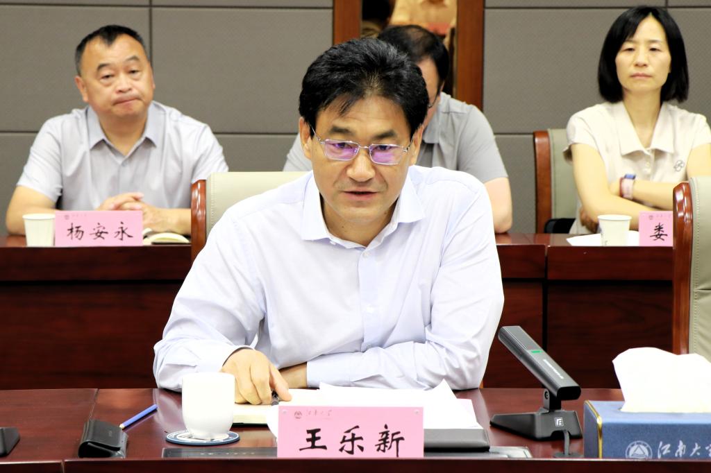 倪松涛对王乐新一行的到来表示热烈欢迎,介绍了学校的历史沿革、发展概况、学科建设、成果转化及社会服务等情况,并着重强调了校地合作的重要性,希望能充分发挥江南大学的学科优势和科研创新能力,助力新乡市、原阳县特色产业高质量发展。王立介绍了学校的产学研合作模式。