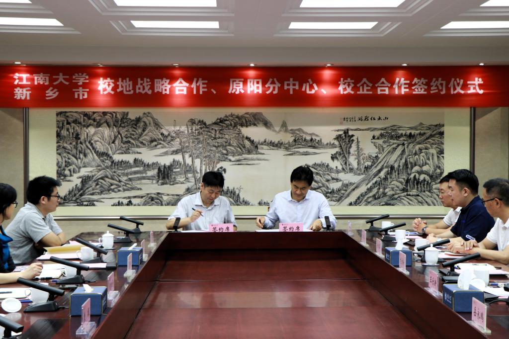 会上,倪松涛与王乐新签署校地战略合作协议,王立与岳永鹏签署江南大学国家技术转移中心原阳分中心协议。与会人员就如何推进政产学研深度合作、解决产业发展实际需求等进行了深入交流。
