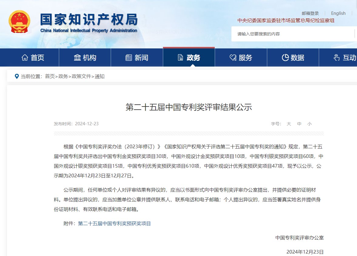 国家知识产权局官网公布
