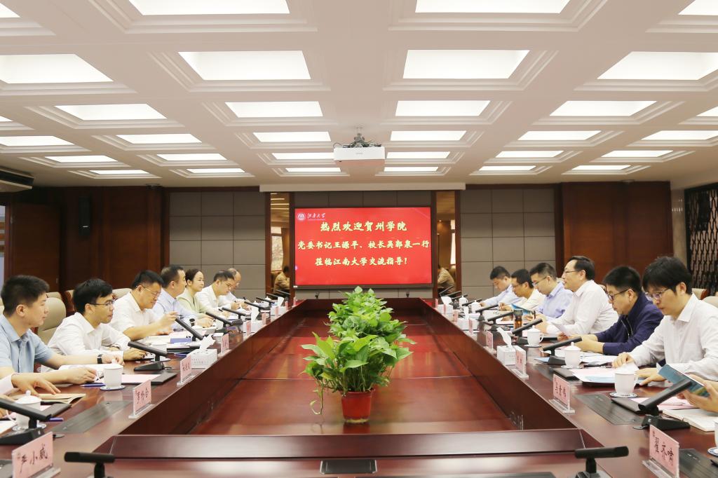 吴郭泉对江南大学的热情接待表示感谢,之后介绍了贺州学院近年来在学科专业建设、科研平台建设、双创教育等方面取得的成绩。此次走访调研,对江南大学有了更深的了解,江南大学的发展经验、学科建设等方面为学校高质量发展提供了宝贵经验。