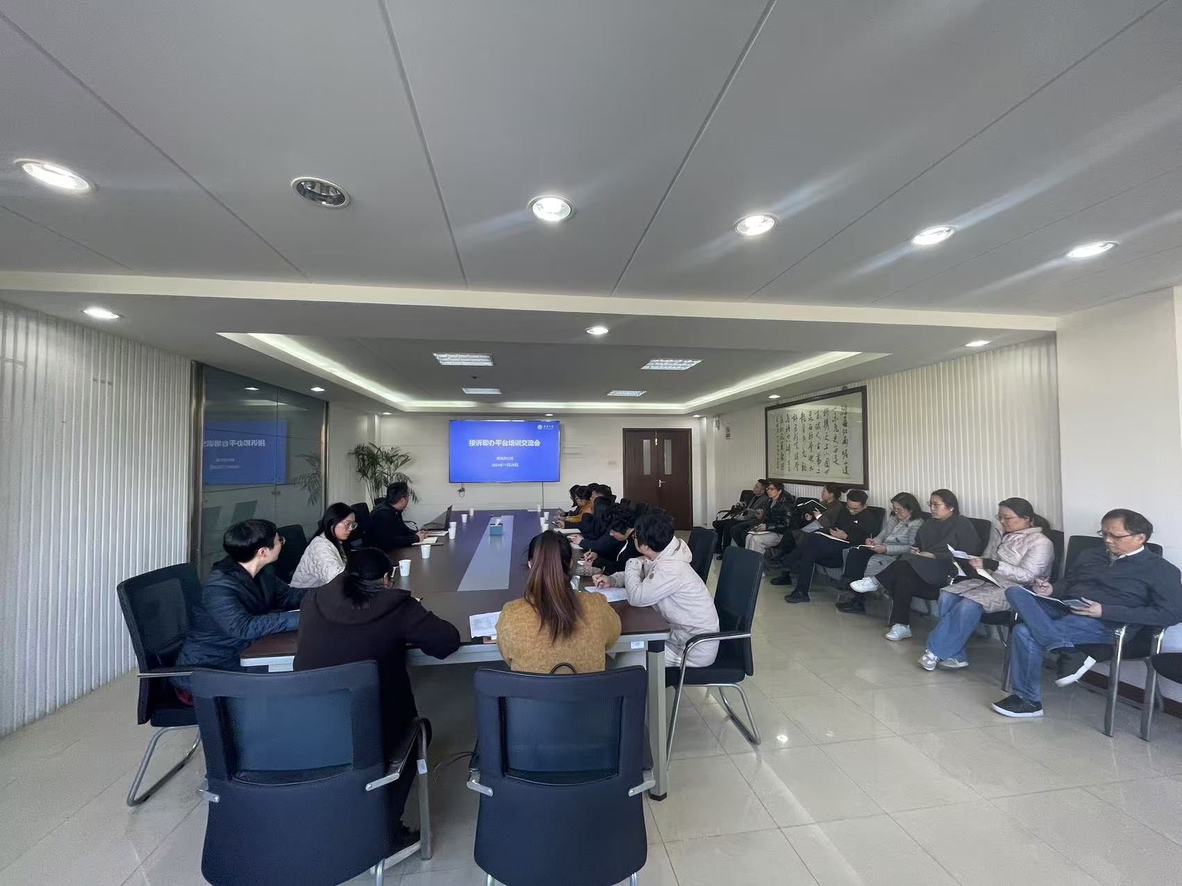 11月28日,校长办公室组织了“接诉即办”平台培训交流会,校内21个部门(单位)的工作人员参加了本次会议。会议由校长办公室副主任陆秦主持。