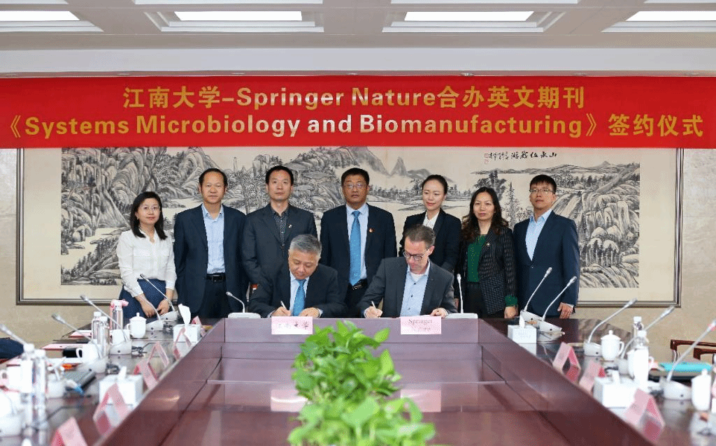 在江南大学与Springer Nature出版集团双方代表的见证下,徐岩副校长与Jacco Flipsen副总裁共同签署合办SMAB英文期刊合作协议。