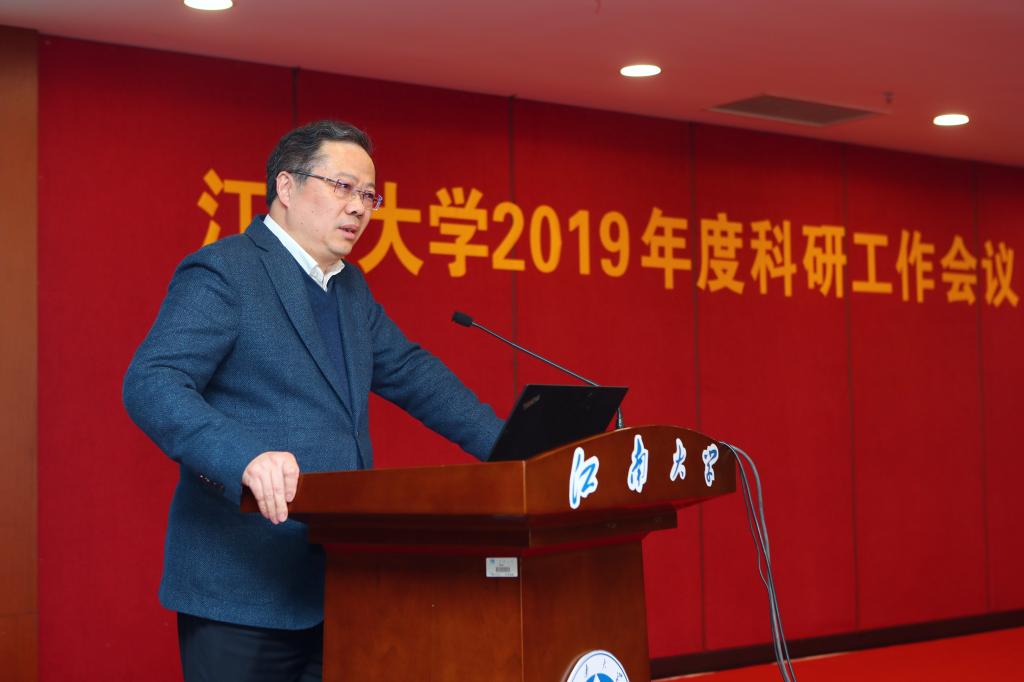 陈卫以“只争朝夕谋发展 不负韶华攀高峰”为题做了2019年度科研工作报告,报告全面总结了2019年学校科研工作。2019年学校科研总经费、发表SCI论文、授权发明专利等均取得新的突破,重大科研项目数量不断增加,科研成果质量明显提高,服务社会能力持续增强,学校科研综合实力显著提升。报告同时指出了科研发展存在的短板和今后的努力方向。报告还对2019年度科研工作中涌现的先进集体和先进个人进行了表彰。