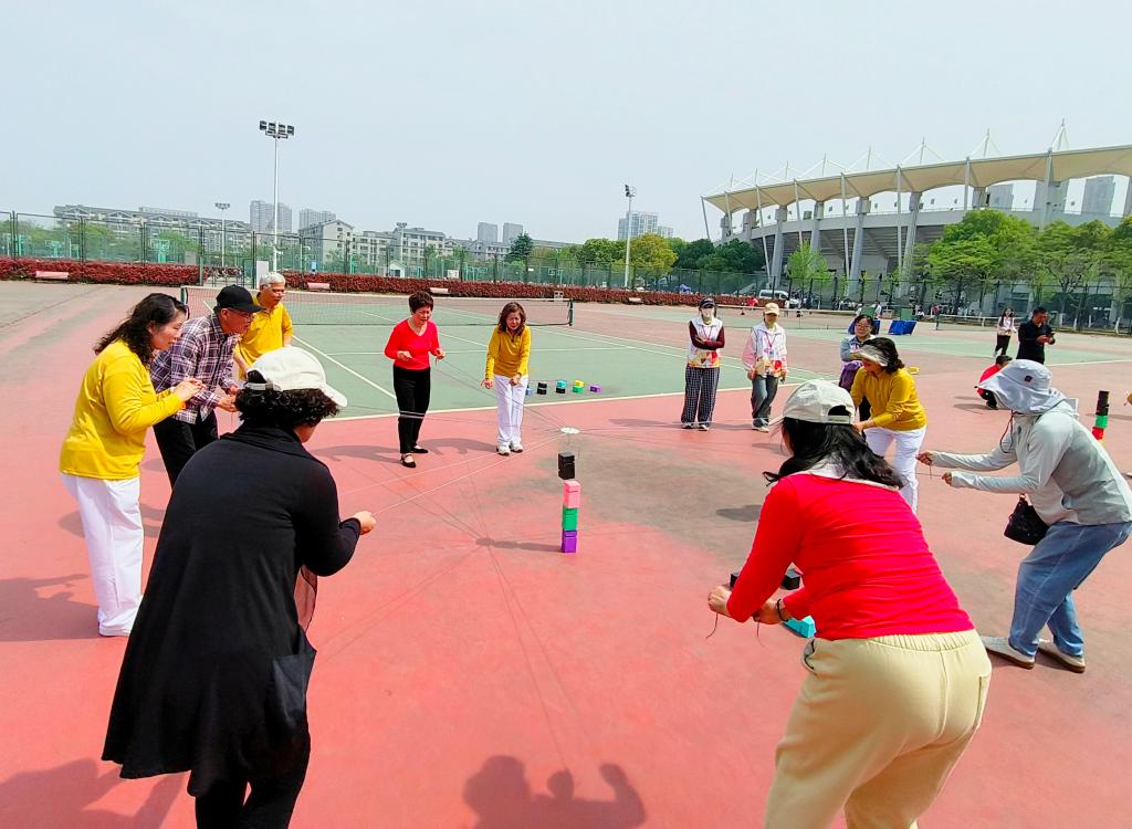 开幕式后,在网球场进行了教工丙组的趣味运动比赛。127名退休教职工分别征战定点射门、投壶、沙包掷准等6个个人项目,11个团队参加了超音速与合力筑塔等2个团体项目的角逐。今年新设的这些项目吸引了更多老同志参与进来,他们在活动中收获了欢乐、健康和友谊。赛后,老体协会长姜忠平为团体项目的前3名颁发了奖品。