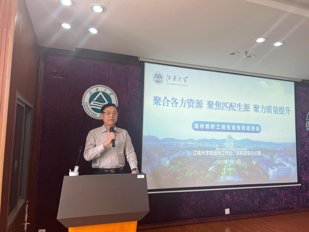首先,李兆丰做动员致辞。他指出培养拔尖创新人才是一流大学的首要任务,只有吸引各地重点高中的更多优质生源,才能筑牢人才培养基石。他介绍了今年我校本科招生政策的主要变化、招生宣传的主要举措,希望各位退休教工招生宣传员能充分发挥优势与经验,助力学校招生宣传工作高质量发展。他对本科招生工作提出四点要求。一是提高思想认识,坚持以系统性思维和全局性谋划推进招生工作,以更高站位全力以赴做好招生工作。二是加强组织领导,党政领导在做招生工作时,要多关心离退休教工招生宣传员身心健康,让其充分发挥优势,增强宣传效果。三是注重服务质量,加强培训,确保招生宣传员的专业性,提升开展招生咨询服务的能力和水平,做好考生及家长的咨询服务工作。四是加强专业宣传,鼓励更多退休教师走进优质生源高中开设科普讲座,开展常态化招生宣传工作,讲好专业好故事,增强专业吸引力,不断提升江南大学美誉度。