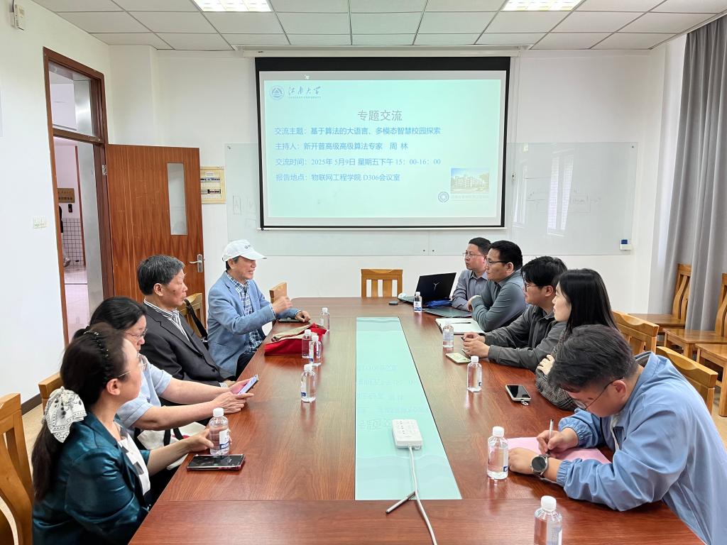 活动之二开展创新交流。组织老科协会员和与会专家及应邀管理和技术人员在D306会议室开展“基于算法的大语言、多模态智慧校园建设”专题交流。