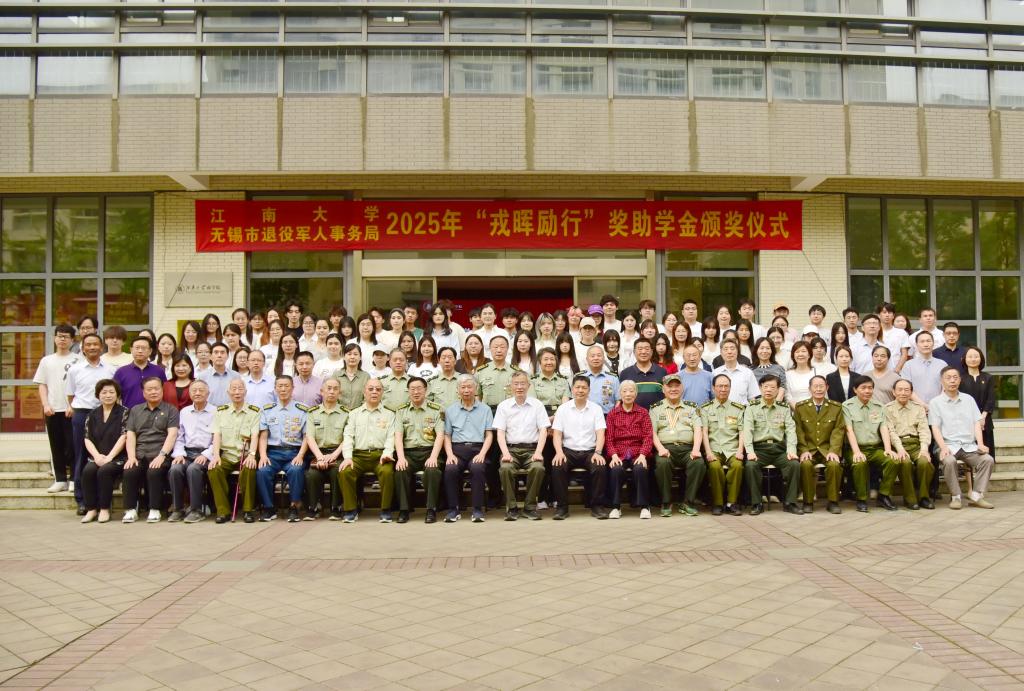 5月28日,江南大学关工委和无锡市退役军人事务局关工委在江南大学远东报告厅举办2025年“戎晖励行”奖助学金颁奖仪式。无锡市关工委副主任须俭,无锡市退役军人事务局党组成员、副局长、关工委主任傅强,局关工委常务副主任梅金超、副主任陶延风,无锡市军休中心党委书记、关工委主任徐尚保,以及市关工委、局关工委、校关工委秘书长,市军休中心(站)领导,军休老干部代表包括学生成长导师、薪火传承报告团、戎晖真情关爱团、锡戎之声合唱团负责人和结对军休干部等。江南大学关工委常务副主任娄国栋,党委宣传部、学生工作部、离退休党工委、社会资源与校友联络处、团委等部门负责人,商学院、法学院、人文学院、纺织科学与工程学院、物联网工程学院、人工智能与计算机学院的党委副书记、分团委书记,以及2022级预科班全体同学,共160多人参加了活动。整个活动由商学院党委副书记孙小芳主持。