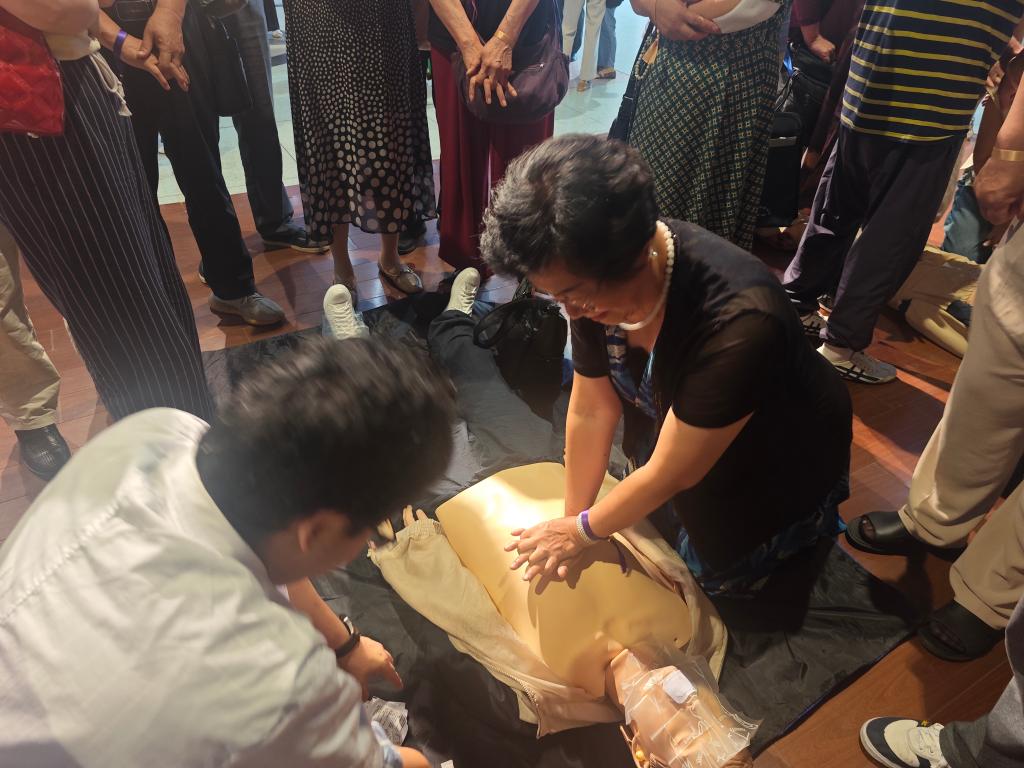 理论学习后,现场设置了实践操作环节。校医院带来了专业的模拟训练道具。在医生们的示范和指导下,参训人员分组轮流、积极踊跃地在模拟人上进行心肺复苏操作,并熟悉AED的使用流程。校医院医生们全程悉心指导,耐心纠正按压位置、力度、频率以及人工呼吸的细节,确保每位学员的动作规范、有效。现场学习氛围浓厚,互动频繁。此次实用生动的培训获得一致好评。参训老同志和工作人员普遍认为,掌握急救技能十分必要,显著增强了应对突发状况的信心和服务保障能力。老同志们纷纷表示“这些救命技能学习非常有必要” “医生手把手教,练得也有效果”“离退休工作处用心了”。