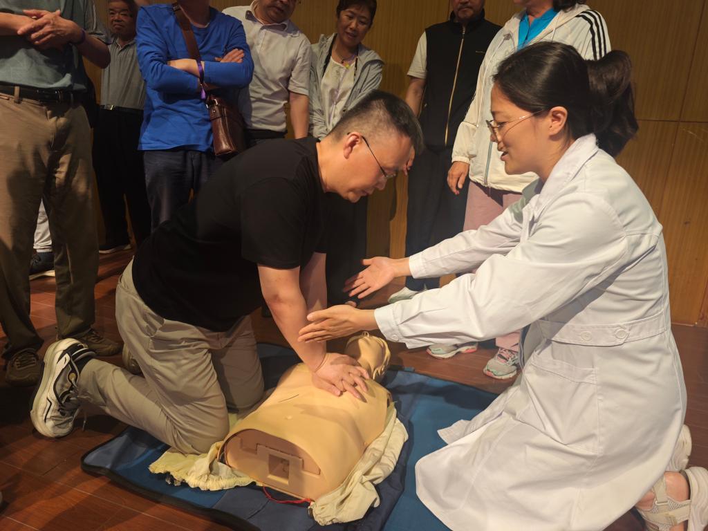 培训由校医院杨文军医生主讲。内容聚焦日常生活中可能遇到的紧急状况。他重点讲解了心肺复苏术(CPR)——即针对成人心脏骤停患者的胸外按压与人工呼吸急救方法、海姆立克急救法——用于快速解除气道异物梗阻,以及全自动体外除颤仪(AED)的使用原理和操作步骤。杨文军医生通过深入浅出地理论讲解,配合生动的案例解析,使复杂的急救知识变得清晰易懂。