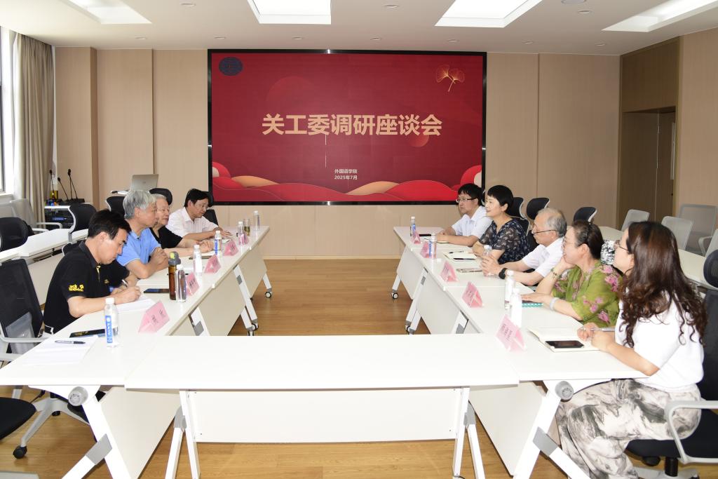 7月4日,校关工委常务副主任娄国栋带队一行5人,到外国语学院开展二级学院关工委“五好”关工委建设调研。学院党委书记李荣华出席并主持座谈会,学院党委非常重视此次工作调研,专门邀请学院原院长、关工委青年教师导师董剑桥教授参加座谈会。学院党委副书记、关工委主任季王飞,学院关工委常务副主任宋苏凤,分团委书记顾海星,以及校关工委副秘书长吴骥一、衡延笃、黄正明,办公室主任姚欣等参加座谈会。