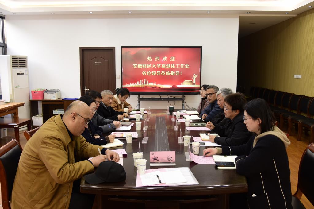 12月25日下午,安徽财经大学离退休工作处一行5人在校关工委常务副主任杨烨,离退休教职工党委书记、校关工委秘书长徐翠平带领下,到访我校开展调研交流。交流座谈会在大学生南区活动中心一楼会议室举行,江南大学关工委常务副主任娄国栋,离退休党委书记、关工委秘书长张才兴,离退休党委副书记徐洪亮及离退休各条线工作人员参加会议,会议由张才兴主持。