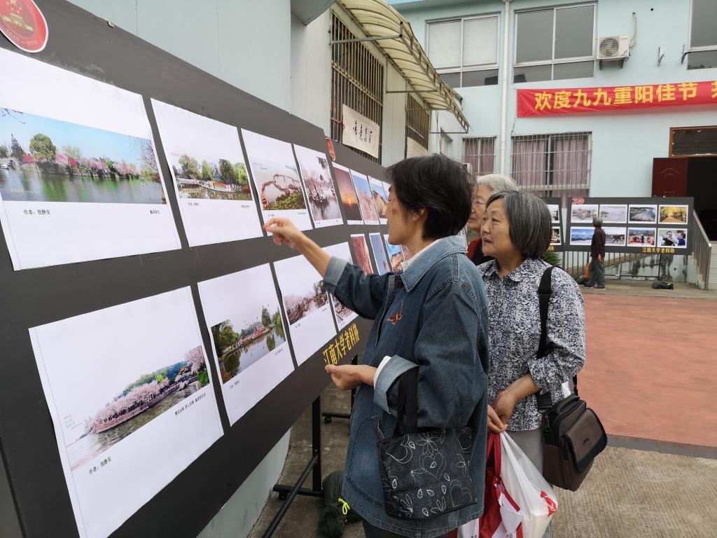 2019年10月7日,作为重阳敬老节活动之一,“我看新中国成立70周年新成就”江南大学离退休人员摄影、书画作品展在离退休人员活动中心顺利开展观展的老同志们或三五成群地议论着,或吆喝着伙伴赶紧来看,或独自指着作品喃喃自语。“见见老朋友”、“聊聊新鲜事”、“看看摄影展”是许多老同志盼望着的一年一度的“重阳节大戏”,年年岁岁人相似,岁岁年年情相同。