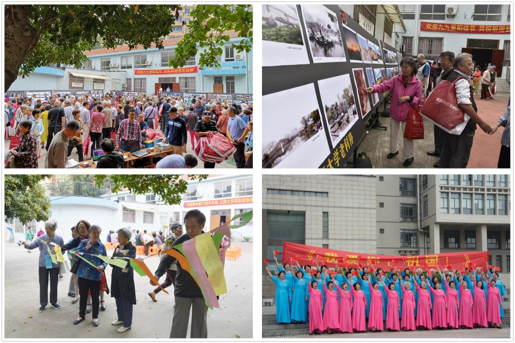 文画抒怀,绘祖国之美。离退休党工委以“我看新中国成立70周年新成就”为主题,分别组织了主题征文活和第六届江南大学离退休人员摄影、绘画作品展活动,并选送作品参加江苏省委老干部局、无锡市老科协等单位组织举办展览。其中,法学院副教授王崇英老师的《感恩伟大的党和祖国》被教育部离退休局微信平台推送。光影留声,言爱国之情。离退休党工委自主策划拍摄视频《我和我的祖国》,记录了学校领导的殷殷关切,离退休工作人员的暖心服务,以及老同志幸福生活的点点滴滴,展示了“老有所为、老有所依、老有所学、老有所乐”的退休生活,在老同志中引起了极大的反响,在播出的当天,阅读量就突破一千。载歌载舞,寓祖国之强。离退休党工委结合关键时间节点,组织了以“欢度九九重阳佳节 共祝祖国繁荣昌盛”为主题的2019年重阳敬老活动,以及离退休老同志“庆祝新中国70周年华诞 江南大学赏秋联谊会”,共计2000余名老同志参与到活动中,他们用爽朗的笑声、满足的笑容告诉所有人这是一个太平盛世,是一个幸福的新时代。