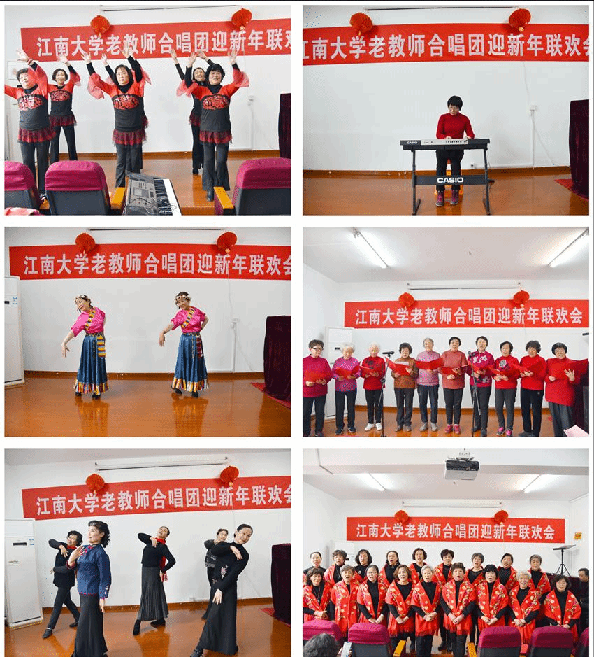 江南大学老教师合唱团迎新年文艺联欢已开展多年。合唱团活动深受老同志们的欢迎,老同志们不仅愉悦了身心,也增进了交流,同时也体现了老同志们美好的退休生活。