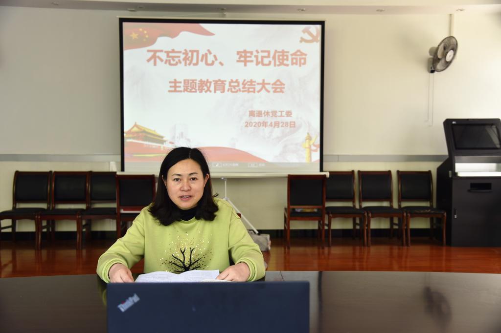 2020年4月28日上午,离退休党工委在南区活动中心一楼会议室召开“不忘初心、牢记使命”主题教育总结大会。此次大会首次采用视频会议形式,离退休党工委、离退休党支部书记、在职支部全体党员参加了会议,会议由离退休党工委书记许群主持。