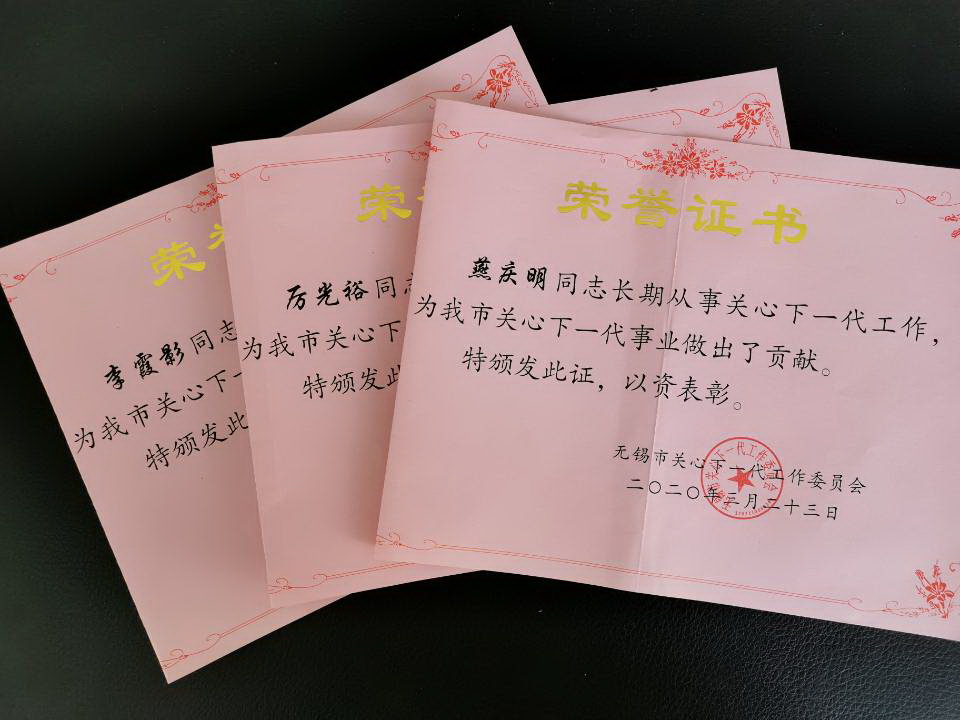 燕庆明、厉光裕、李霞影受到无锡市关心下一代委员会表彰