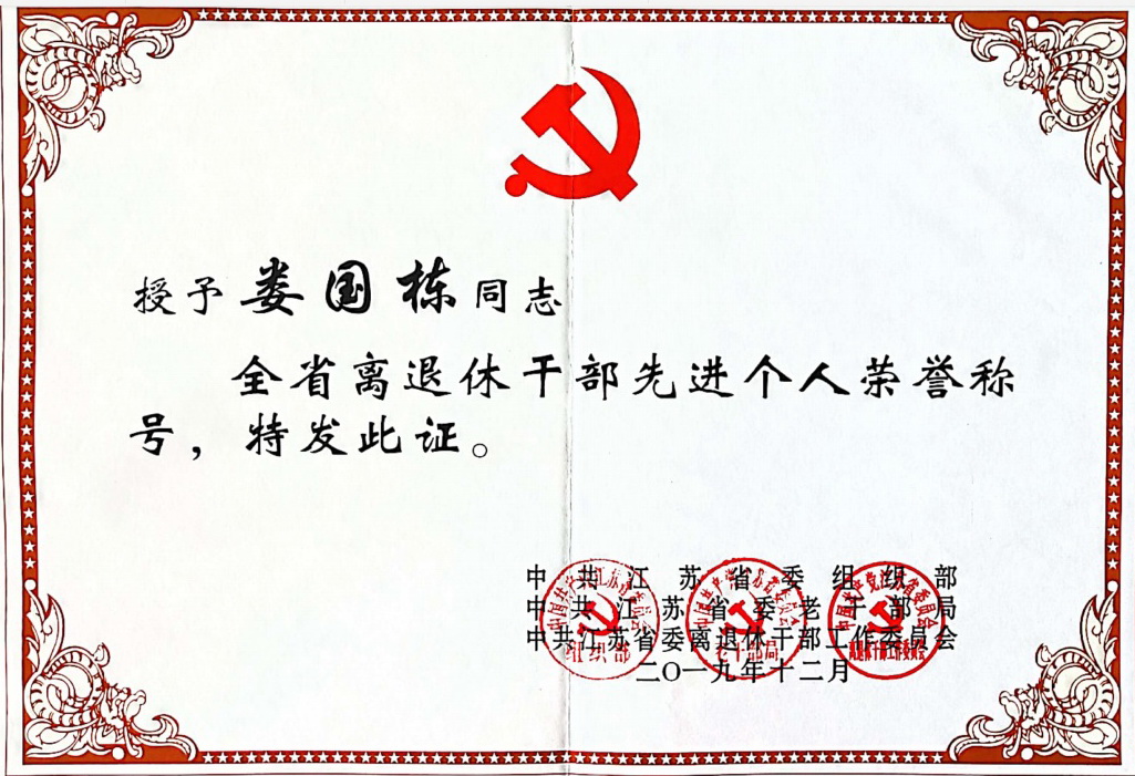 近期,我校关工委一批老同志分别荣获省、市表彰。校关工委常务副主任娄国栋同志获得中共江苏省委组织部、中共江苏省委老干部局、中共江苏省委离退休干部工作委员会联合表彰的“全省离退休干部先进个人”称号。此次全省共表彰了100个离退休干部先进集体和200位先进个人。另外,我校校关工委副主任燕庆明、校关工委顾问厉光裕、李霞影等三位同志因长期从事关心下一代工作,为关心下一代事业做出的贡献,受到了无锡市关心下一代工作委员会的表彰。
