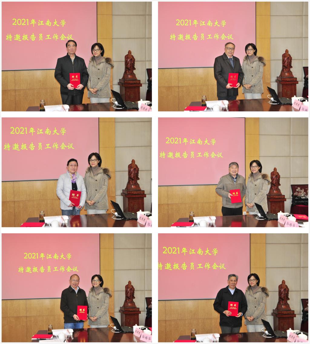 会上,,许群宣读了党委办公室印发的《关于聘请江南大学特邀报告员的决定》(江大委[2021]3号)文件。张影陆代表学校党委逐一向特邀报告员颁发聘书。
