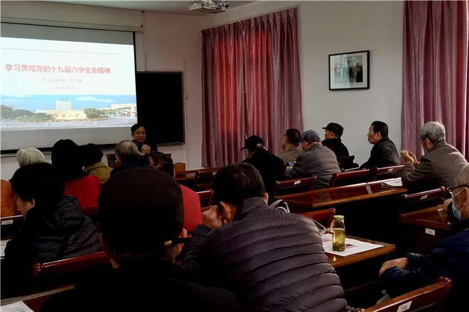 11月26日,机关退休三支部组织党员认真学习了党的十九届六中全会精神,支部书记王剑星同志以“恢宏的史诗 灿烂的华章”为题,重点围绕六中全会召开的重大意义和全会公报中的重要论断和历史经验,精心制作了PPT课件,上了学习辅导党课,进行分享解读。