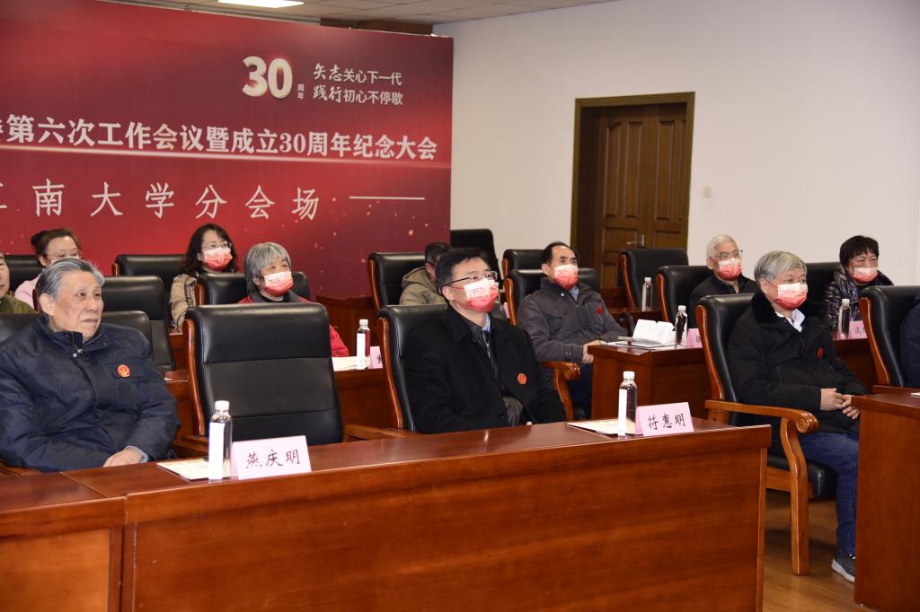 12月22日,江南大学关工委在文浩科学馆三楼会议室设立分会场,参加教育部关工委第六次工作会议暨成立30周年纪念大会视频会议,校党委副书记符惠明,党委常委、党委办公室主任朱飞,校关工委常务副主任娄国栋、副主任燕庆明,离退休党工委书记、校关工委秘书长许群,以及校关工委委员、副秘书长、各学院关工委常务副主任等20多人参加了会议。观看了大会现场播放的《纪念教育部关工委成立30周年宣传片》,学习了贵州省教育厅关工委等7家省市教育系统关工委、高校关工委等单位和个人的工作交流和经验介绍,听取了教育部关工委主任李卫红所作的《坚守初心,继往开来,为培养时代新人作贡献》工作报告,聆听了教育部党组书记、部长怀进鹏和第十届全国人大常委会副委员长、中国关工委主任顾秀莲的重要讲话。会议还表彰了关心下一代工作的先进集体和个人,江南大学荣获全国教育系统关心下一代先进集体。