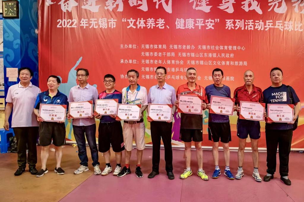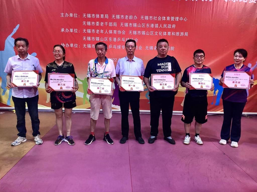 6月25日,2022年无锡市“文体养老,健康平安”系列活动——乒乓球比赛在无锡市锡山区东港镇轩杰游泳健身馆举行。我校老体协代表队获得了女子团体第五名,男子团体优胜奖。