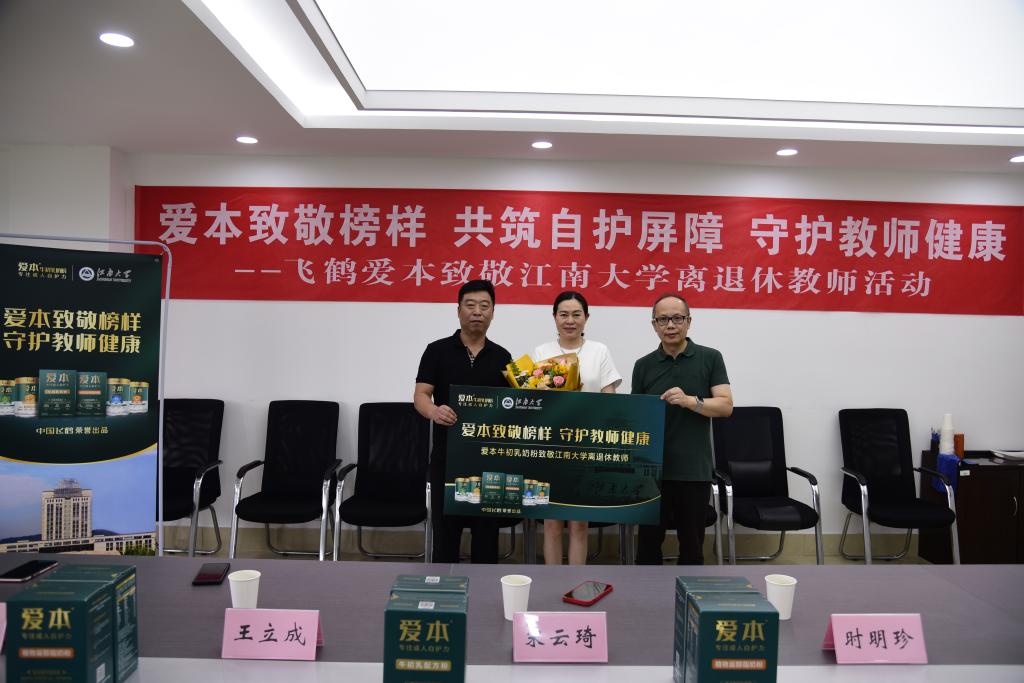 王立成表示,飞鹤乳业作为我国最早的奶粉企业之一,长期致力于中国人的营养研究,在实现自身高质量发展的同时,积极践行“产业报国、感恩社会”的企业责任。在第39个教师节来临之际,企业为江南大学离退休老师精心准备了为中老年人专门研发的爱本成人配方奶粉,为一生投身教育的老师们提供健康营养守护,祝老师们身体健康、教师节快乐!