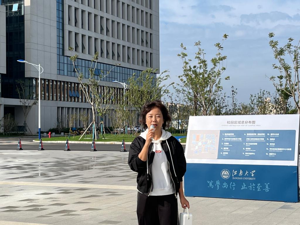 江阴校区管理办公室主任王珏首先介绍了江阴校区的建设情况、学院入驻情况、功能布局和建设愿景等。江阴校区自今年正式启用以来,已有四个学院1700多名学生入驻,目前,各项教学、管理工作运行有序。接着,在王珏和校区管理办公室老师的带领下,各支部党员集中观看了江阴校区建设宣传片,深入参观了图书馆并俯瞰了校园全景。