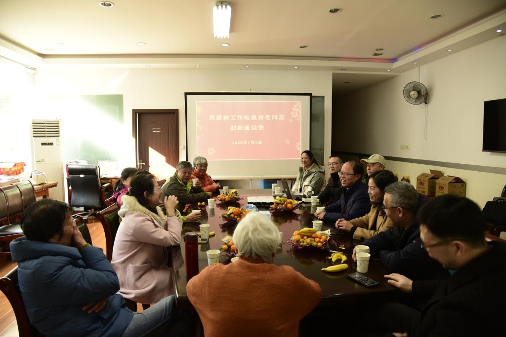 1月2日,离退休工作处在蠡湖片区会议室举行部门退休老同志迎新座谈会,共同回顾往昔,畅想未来。离退休党工委书记、离退休工作处处长张才兴,党工委副书记、副处长陈祎,副处长徐洪亮等工作人员和部门退休的10位老同志一起参加了活动。