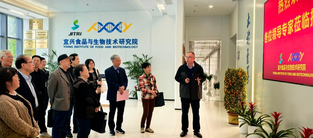 7日培训会前,大家参观了宜兴食品与生物技术研究院。宜兴食品与生物技术研究院位于宜兴生命健康产业园,是江南大学教授团队牵头与宜兴经开区合作建设的新型研发机构,以合成生物学与食品配料创制、功能食品的生物制造技术与产业化、食品低碳智造与质量安全、特医食品研发与临床转化应用为主要研究方向,力争实现多项关键技术重点突破,同时构建食品配料生物制造中试实验室、食品与生物技术公共服务平台,为研究院技术成果转化提供全方位支持和服务。自2022年建院以来,已在教授团队入住、科研成果突破、高科技企业入住等方面取得显著成绩。关工委一行为研究院取得的成绩感到振奋和自豪,表示将继续充分发挥余热,为强国建设贡献自身的力量!