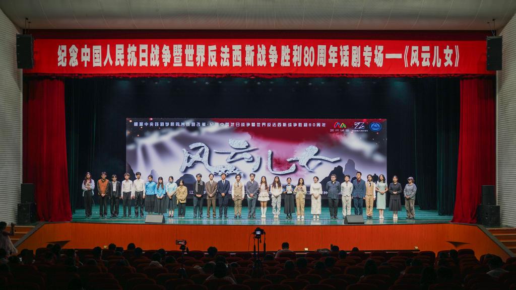 近日,江南大学纪念中国人民抗日战争暨世界反法西斯战争胜利80周年话剧专场——种子话剧团2025年度大戏《风云儿女》,于蠡湖校区文浩科学馆成功演出。本次活动由校团委、人文学院、雪浪街道文化站联合主办,由江南大学种子话剧团改编中央戏剧学院同名话剧《风云儿女》将红色历史巨献搬上舞台。