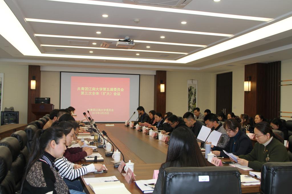 2019年3月25日下午,共青团江南大学第五届委员会第三次全体(扩大)会议在物联网工程学院222会议室举行。共青团江南大学第五届全体委员、校团委全体成员、各学院分团委书记参加了会议,会议由校团委书记王维主持。