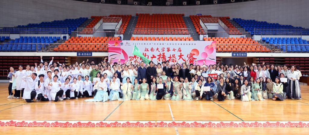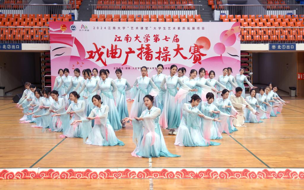 近日,江南大学第七届戏曲广播操大赛分别在蠡湖校区、江阴霞客湾校区成功举办。活动以“礼敬中华文化,祝福伟大祖国”为主题,是学校庆祝中华人民共和国成立75周年系列活动之一,由国家大学生文化素质教育基地、校团委和人文学院联合主办。校团委副书记吴垚,人文学院舞蹈系副教授、系主任叶凌飞,校团委挂职副书记、人文学院舞蹈系副教授刘悦钧、人文学院舞蹈系艺术实践教研室主任郑雯雯等担任评委,21支学院代表队参加比赛。