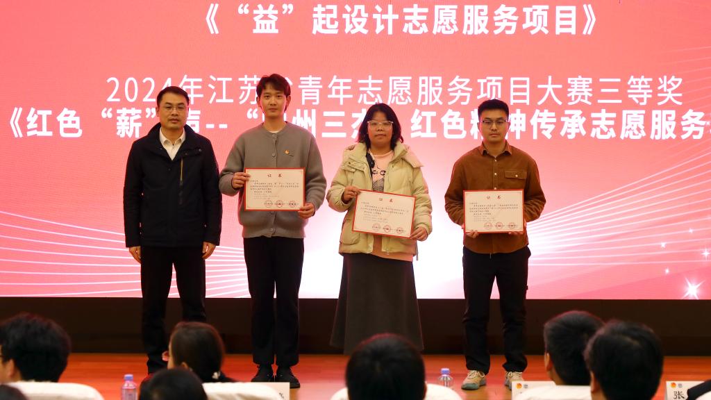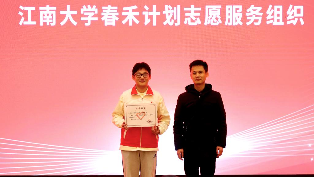 在“志愿微光·点亮江南实践路”篇章中,俞立峰为我校在2024年江苏省青年志愿服务项目大赛中获奖项目食品学院《科普小站》、设计学院《“益”起设计》与物联网工程学院《红色“薪”声》颁发优秀志愿服务项目证书,陈周为我校江苏省优秀青年志愿服务行动组织奖获得组织医学院春禾计划志愿服务组织颁发优秀志愿服务组织证书,为2023-2024年度大学生志愿服务西部计划考核等次优秀志愿者张旭航、余柳锋颁发证书。随后,在“归来话成长”中,获得过中国红十字会志愿服务项目大赛银奖、江苏省红十字会博爱青春志愿服务项目大赛金奖的医学院“博爱青春”志愿服务项目团队成员涂泽萱、臧子布,第25届研究生支教团团长张旭航,分别讲述了他们在志愿服务中的成长与收获,展现了江南青年的责任与担当。