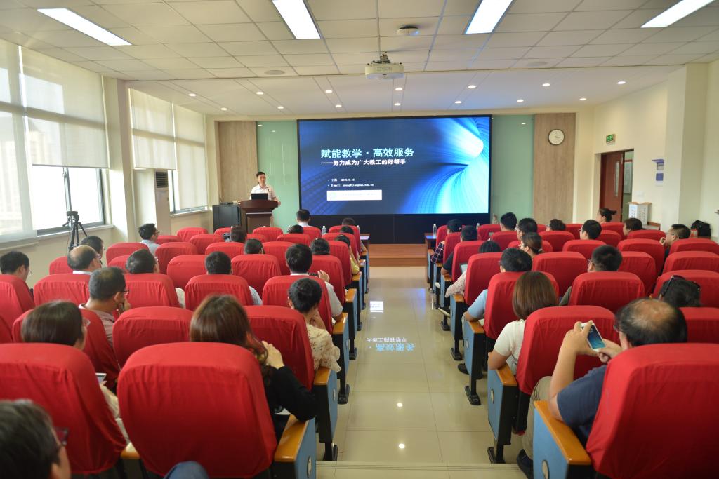 9月18日下午,教学评估与教师卓越中心特邀校信息化中心副主任王强、人文学院教育技术学博士马志强,走进食品学院做关于智慧教室智慧教学工作坊。活动由食品学院教师卓越分中心主任卢蓉蓉教授主持,食品学院的青年教师以及我校2019年新入职教师等共55人参加了本次培训。