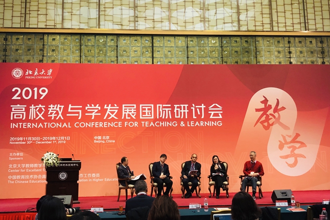11月30日至12月1日,由北京大学教师教学发展中心主办的“2019高校教与学发展国际研讨会”在北京大学举行。教育部教师工作司司长任友群,中国高等教育学会副会长、教育部高教司原司长张大良,中国教育技术协会副会长兼秘书长丁新出席活动,来自美国哈佛大学、布朗大学、英国伦敦大学学院、日本早稻田大学、新加坡南洋理工大学等十几所世界一流大学的教师教学发展中心主任,联合国教科文组织北京代表处、美国教师专业与组织发展协会、英国高等教育协会、英国教师教育发展协会等机构的负责人,以及来自全国91所高校的教师教学发展中心主任和工作人员、一线教师等330多人参加了此次国际研讨会。我校教学评估与教师卓越中心带领一线骨干教师等11位参加会议。