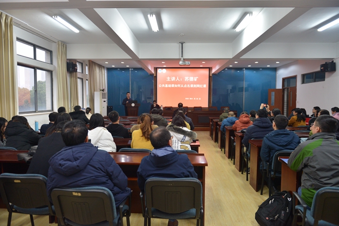 1月3日下午,我校首次学院专题定制培训活动在理学院会议室202举行,活动特邀全国十大最美教师、国家精品课程《微积分》课程负责人、浙江大学“网红”教师苏德矿教授,来我校作题为“公共基础课如何从点名课到网红课”专题讲座。理学院相关学科教师、我校2019年新入职教师共110多人参加了此次活动,活动由理学院副院长胡满峰教授主持。