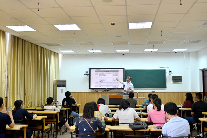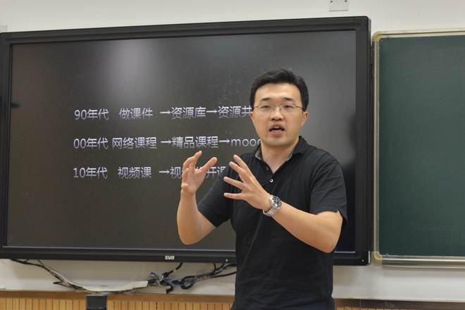 裴世鑫教授围绕“微课制作经验分享与优秀作品赏析”主题,从什么是微课和微课程、参赛作品如何选题讲起,全面分享了微课和课堂教学课件设计的异同、录制与剪修需遵循的原则、参赛作品的组成与评分等内容。他指出智能+技术的全面普及决定了我们的教育对象是移动互联网环境下成长起来的“数字化”一代,微视频制作将成为互联网时代每个教师必备的基本功。他建议教师在微课微视频制作时,教学设计要突出重点、视频录制要高清晰度、实验类课程要有演示、理论类课程要有推导、课程宣传片要有吸引力。