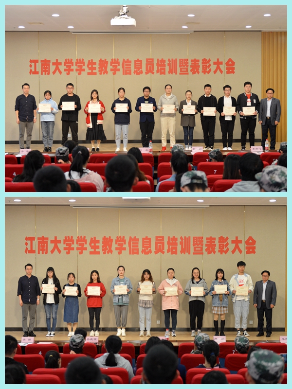 随后,食品学院教务秘书蔡晓霞立足教学管理一线,介绍了食品学院学生教学信息员工作的具体做法。教学评估与教师卓越中心李燕飞就信息员管理系统的相关操作及注意事项做了简要介绍。生物工程学院基地1701班尹国斌和纺织科学与工程学院轻化1602班苏婧同学分享了搜集、甄别、整合与反馈有效教学信息的心得。2019-2020学年35名优秀学生教学信息员代表受到表彰。
