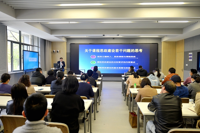 4月7日下午,教学评估与教师卓越中心联合教务处、党委教师工作部开展的“课程思政建设月”系列专题培训活动在江南大学智慧教学工作站(第二教学楼2D104)拉开序幕,首期培训邀请了上海交通大学马克思主义学院李梁教授为我校教师作题为《关于课程思政建设若干问题的思考》的报告。各学院新教师代表等70余人参加讲座,教学评估与教师卓越中心主任刘和主持讲座。