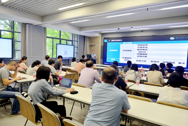为推动高校信息技术与教育的深度融合,切实提升我校教师新媒体技术运用能力和微课设计与制作水平,6月2日下午,教学评估与教师卓越中心“微课设计与制作”专题培训在江南大学智慧教学工作站(第二教学楼2D104)举行。培训特邀南京信息工程大学教学突出贡献奖获得者裴世鑫教授、江南大学设计学院李昕老师做专题讲座。教学评估与教师卓越中心主任刘和主持培训,活动吸引了对微课制作感兴趣或有意向申报2021年度校微课比赛的教师,共计60余人参加。
