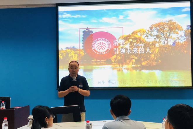 本次研修特邀北京大学教师教学发展中心主任、中国埃德加斯诺研究中心主任孙华,北京理工大学教学促进与教师发展研究中心主任、高校教学发展联盟(CHED)常务理事庞海芍,首批国家级混合式一流课程负责人、北京大学生命科学学院副院长顾红雅,国家级一流在线开放课程主讲人北京大学冯菲,国家级课程思政示范课、中央民族大学教育学院副院长江凤娟,北京理工大学高筱卉等,分别围绕“培养引领未来的人—北大本科教育改革的探索与实践”“教学学术和以学生为中心的国家教学成果培育”“混合式一流课程的建设与申报”“MOOC-Inside混合式教学全流程设计”“课程思政与当今大学的课程重构”“SOTL是什么、怎么做”等主题进行授课。我校教学评估与教师卓越中心与北京理工大学教师教学促进与教师发展中心围绕教师教学发展等议题进行了工作交流。为庆祝建党100周年,此次研修活动专题设置了党史学习环节,全体参培教师集中参观了国家博物馆和北大百年讲堂,从党的百年伟大奋斗历程中汲取继续前进的智慧和力量。参培教师普遍反馈,此次研修活动设计丰富,学习内容充实,既是一场难得的教学启发之旅,也是一堂生动的党史学习教育课。